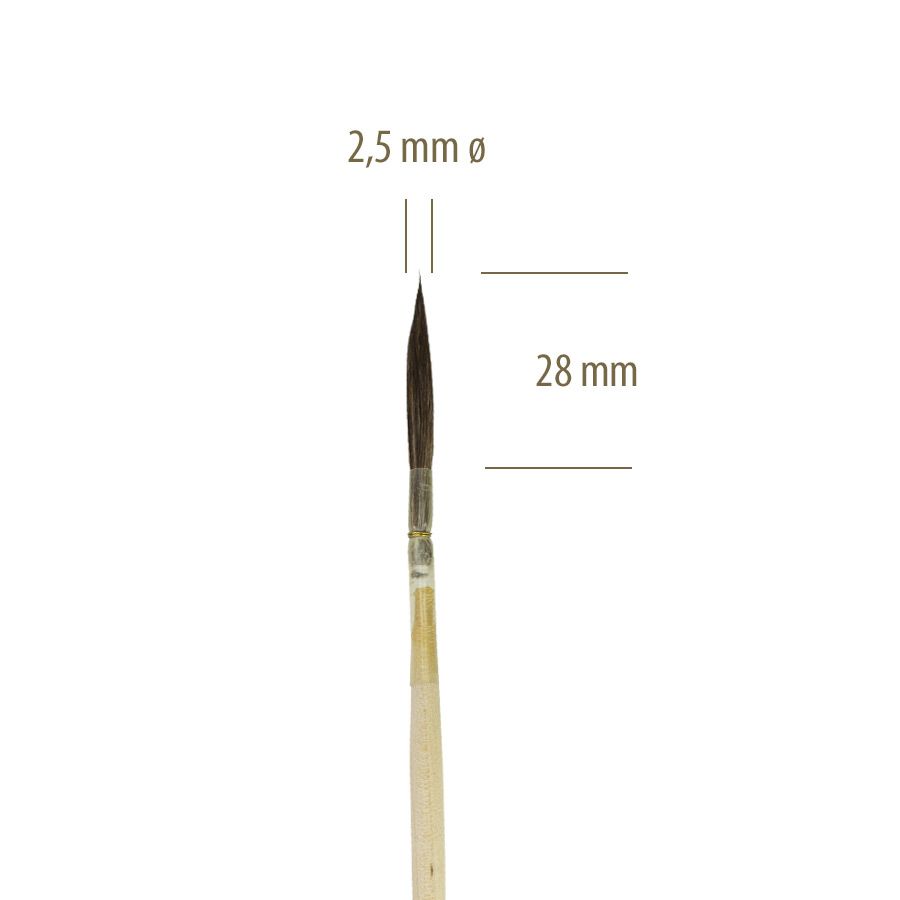 Bristle measurements = 2,5mm in diameter x 28mm in lenght.