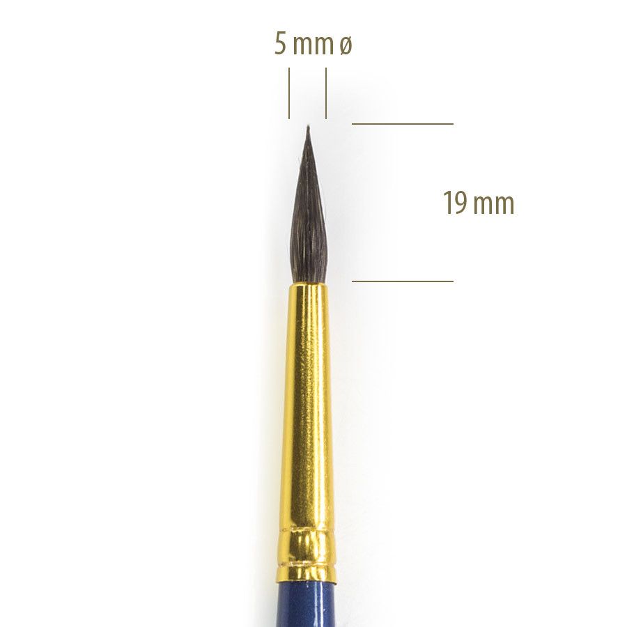 Paintbrush with pointed bristles made of natural squirrel fur.