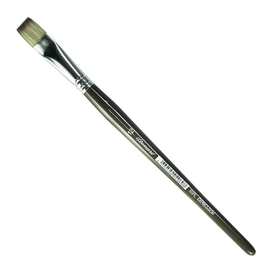 Pincel Leonard chato, com pelo sintético na cor cinza, virola de metal e cabo curto cilindríco em madeira. Pelo flexível e firme, adequadas para a pintura em porcelana e vidro.