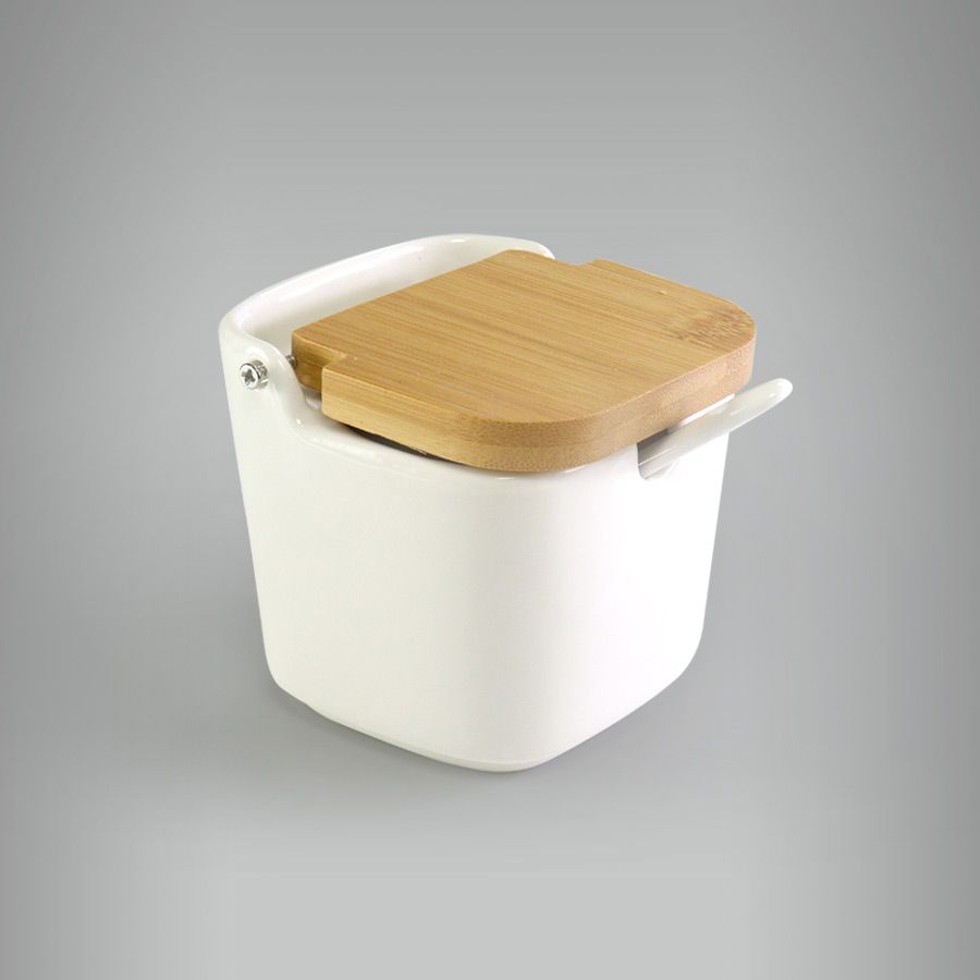 Saleiro de mesa com Tampa de Madeira e Colher