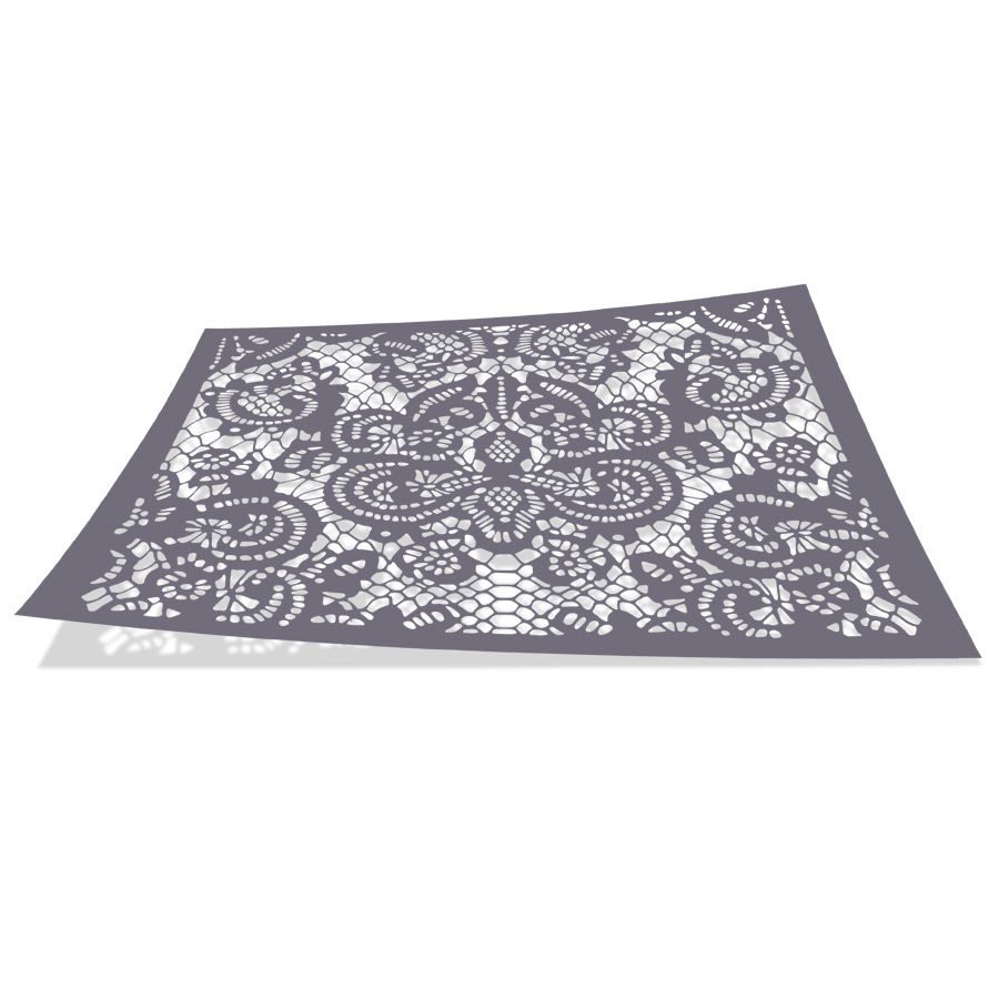 Stencil feito com filme de pvc. Pode haver variação na cor do plástico.
